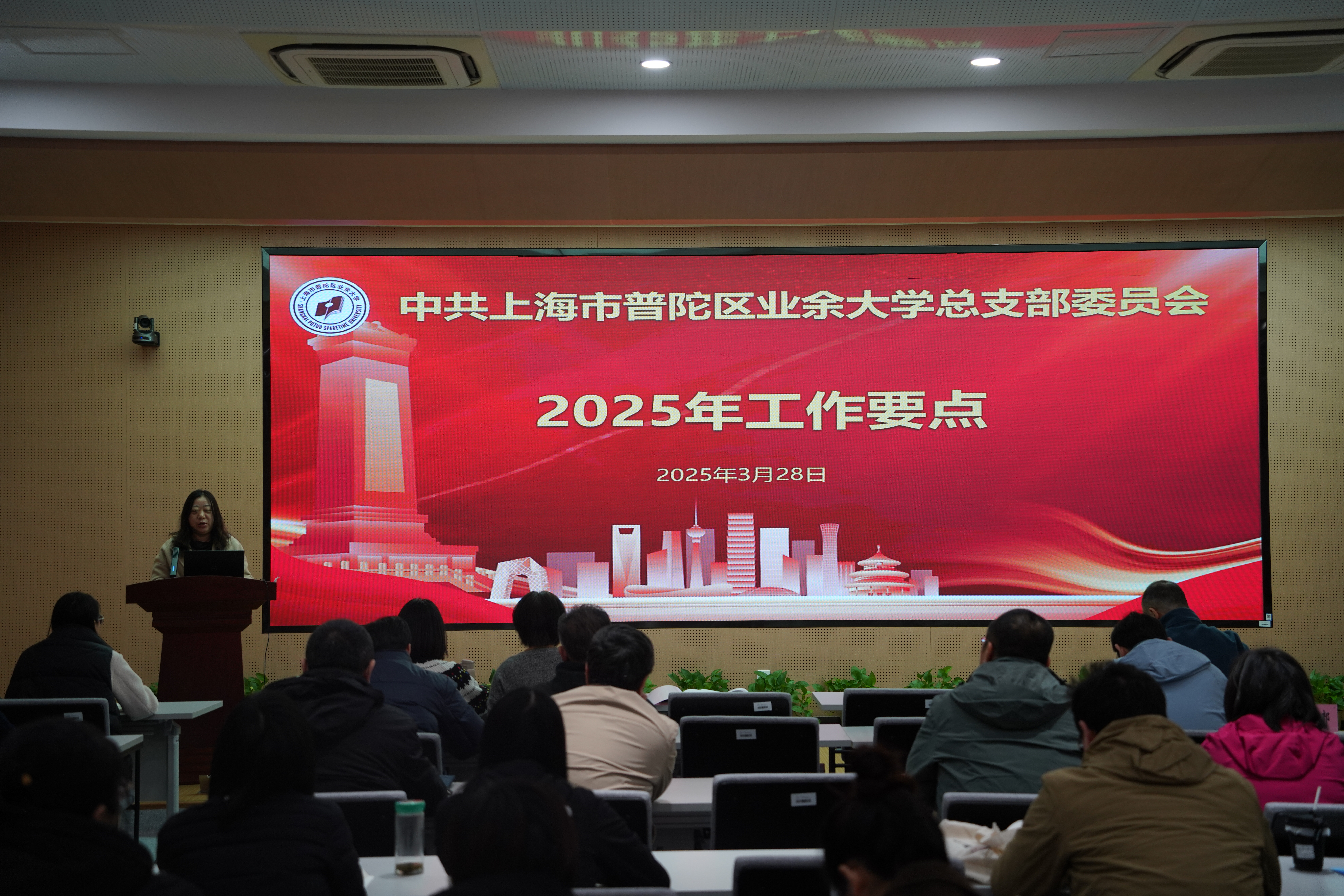 为深入学习贯彻习近平新时代中国特色社会主义思想和党的二十届三中全会精神,巩固深化党纪学习教育成果,推进作风建设常态化长效化,上海市普陀区业余大学党总支于3月28日下午召开全面从严治党暨党风廉政专题党员大会。会议由党总支副书记、校长徐文清主持,全体党员、中层干部及入党积极分子共同参加。
