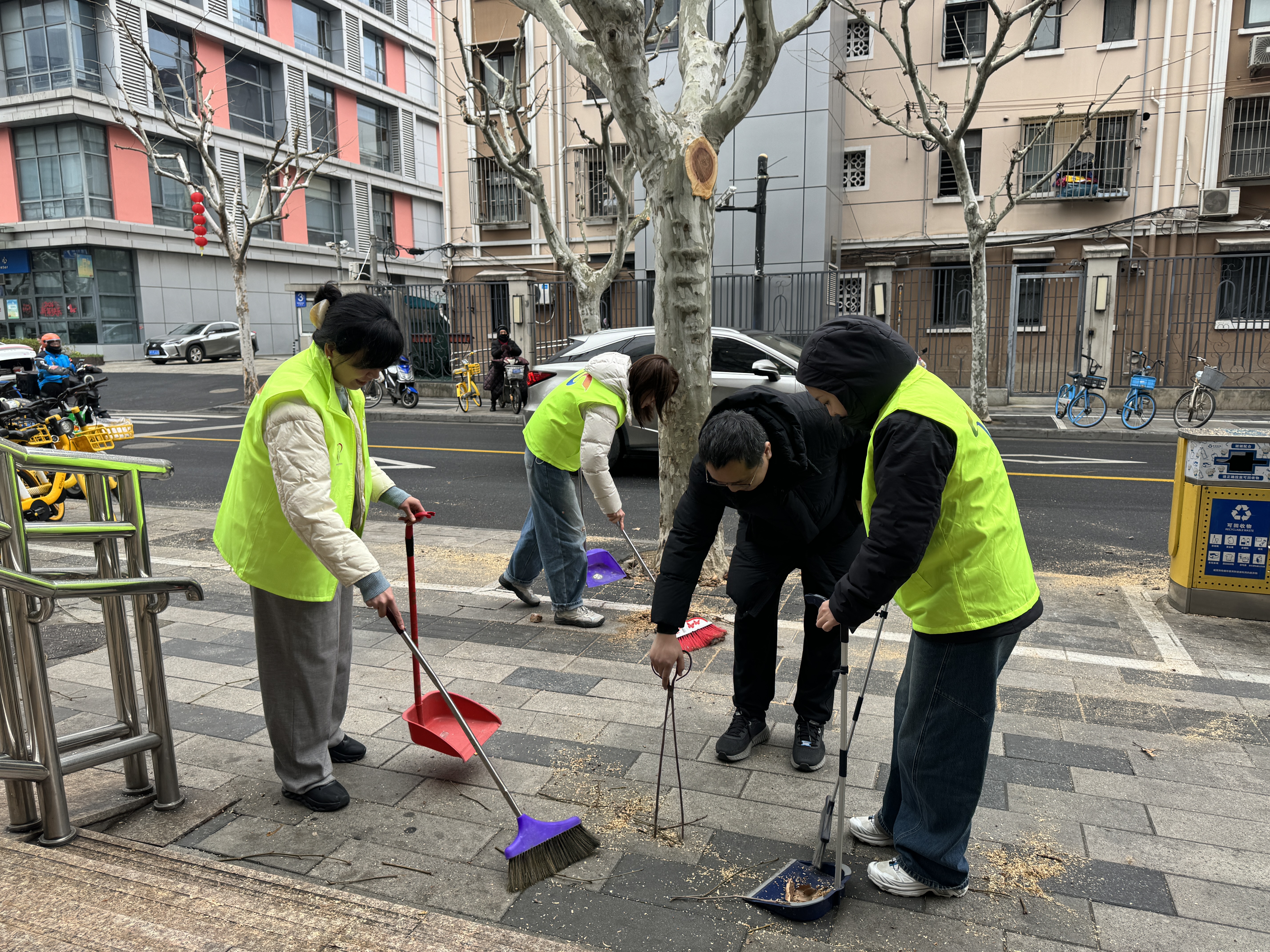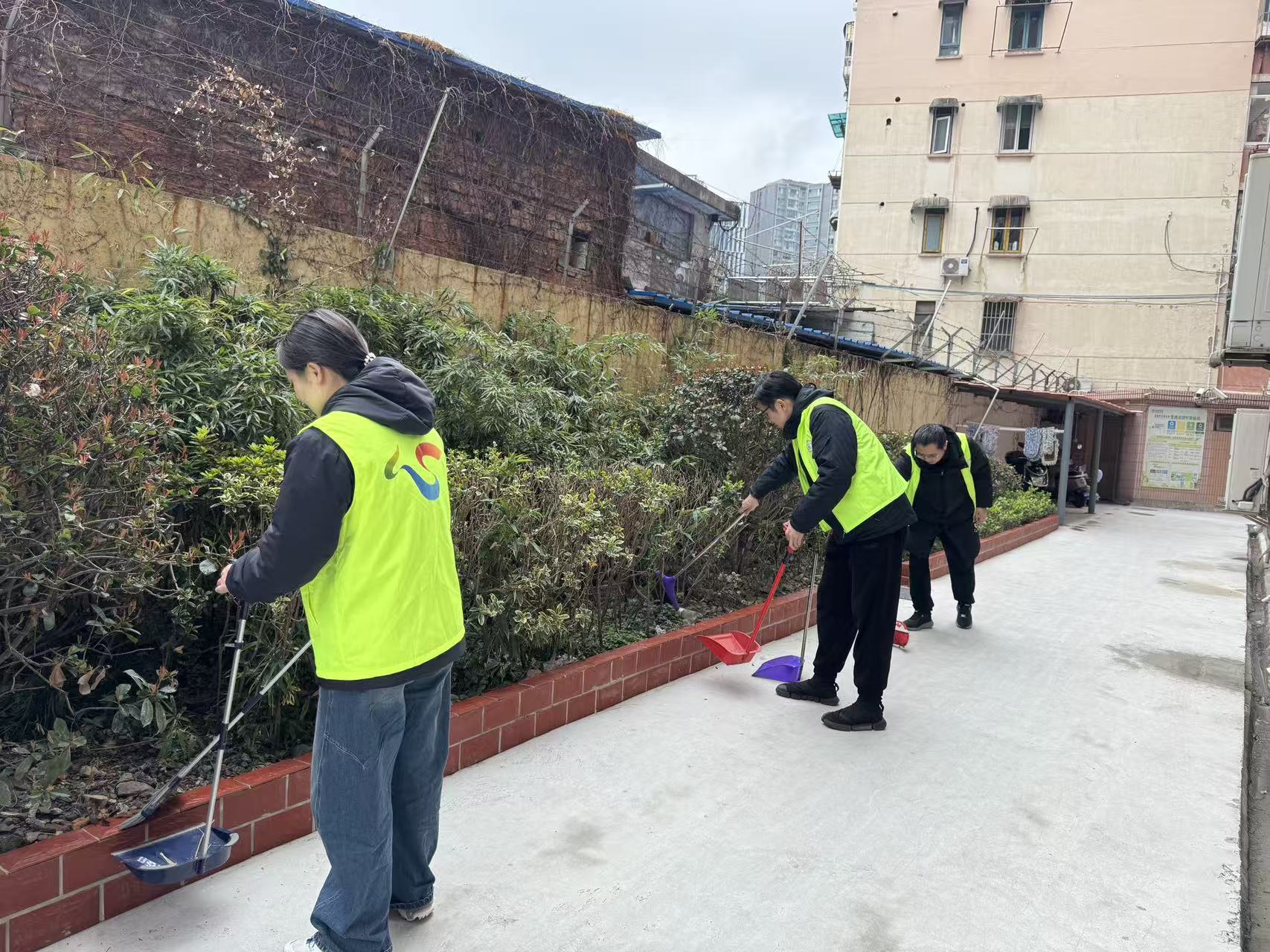 第一党支部和第二党支部党员及入党积极分子在曹杨路、枫桥路校区周边开展“学雷锋·优环境”活动,党员们携带扫把、抹布、钳子、垃圾袋等工具,对校园门口草坪、绿化带及校内绿化灌木丛中的垃圾死角进行全面清理,以实际行动维护校园及周边整洁有序,充分展现共产党员的良好形象。